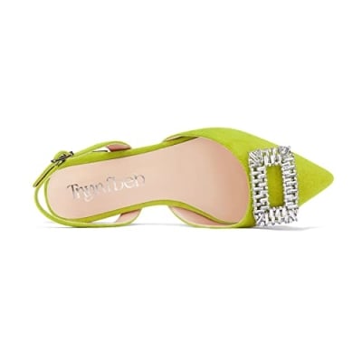 TNYNFBEB Women Chunky Block Low Heel Pointed Toe Flats Shoes Slingback Buckle Rhinestone Crystal Party Cute 0.6 Inches Heels Lime Green