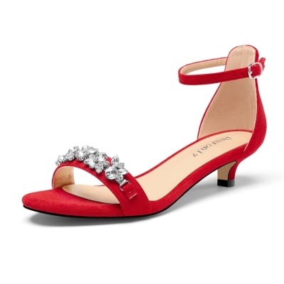 Strap with Rhinestone Kitten Heel Ankle Strap Sandals Low-Heels Shoes 1.3 Inch Heels