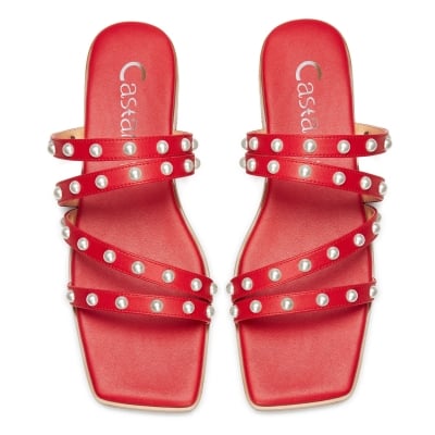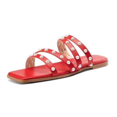 Pearl Strappy Flat Sandals Square-Toe Classic Sexy Shoes Slip-on Flat-Shoes
