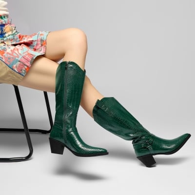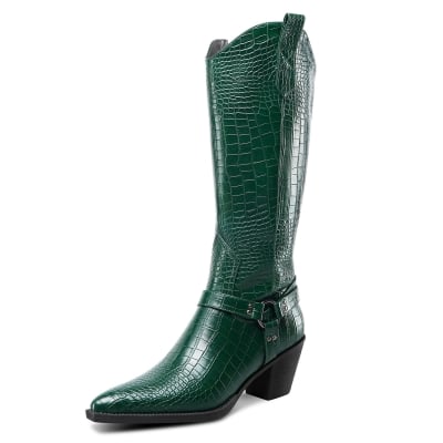 Women Ladies Cowboy Boots for Women Western Cowgirl Boots Embroidered Pointed Toe Mid Calf Boots with Chunky Block Heel 6CM Heels