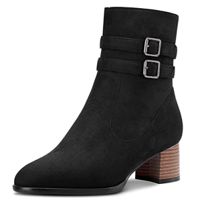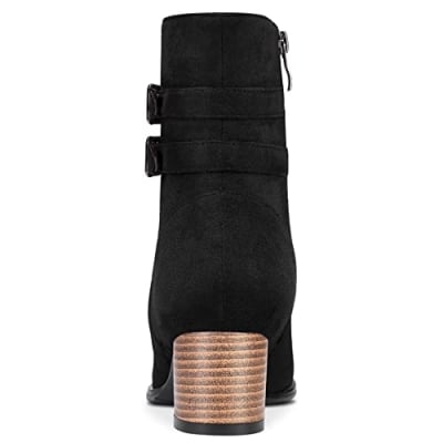 DearOnly Womens Short Bootie Ankle Boots Mid Calf Pointed Toe Block Chunky High Heel Suede Dress Shoes Vintage Classic Zipper Black 2 Inch