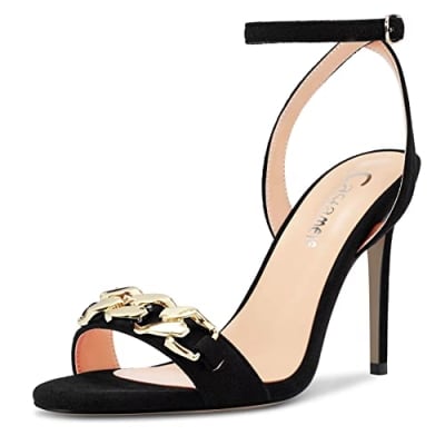 Women Stiletto High Heel Open Toe Ankle Strap Metal Chain Sandals Prom Party 3.9 Inches Heels Black